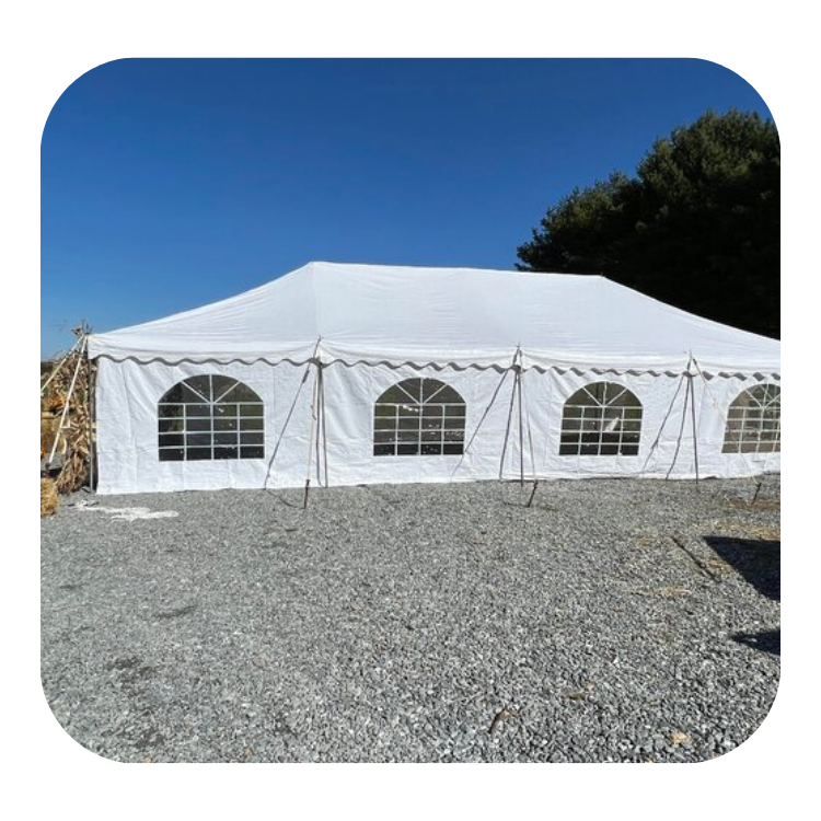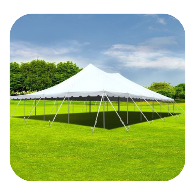 Peg and pole tents are among the most popular and cost-effective tents for sale on the market. These classic pole tents are supported by a combination of pegs, side poles, and center poles, securely anchored into soft surfaces like grass or soil. Built from durable canvas or heavy-duty PVC, these tents are known for their ease of assembly and ability to withstand various weather conditions. Whether you’re planning a pole tent wedding, hosting a festival, or need a tent for storage, peg and pole marquees for sale from Royal Tent deliver exceptional value and versatility.